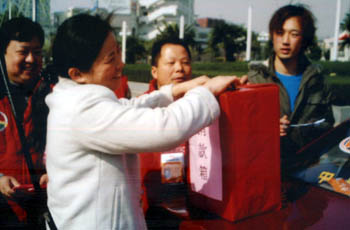 2006年3月16日,在滁州市人民广场、在丰乐路口的市交警支队门前,在爱心涌动的滁城街头,络绎不绝的人们纷纷把一张张凝聚爱心的人民币投入捐款箱……